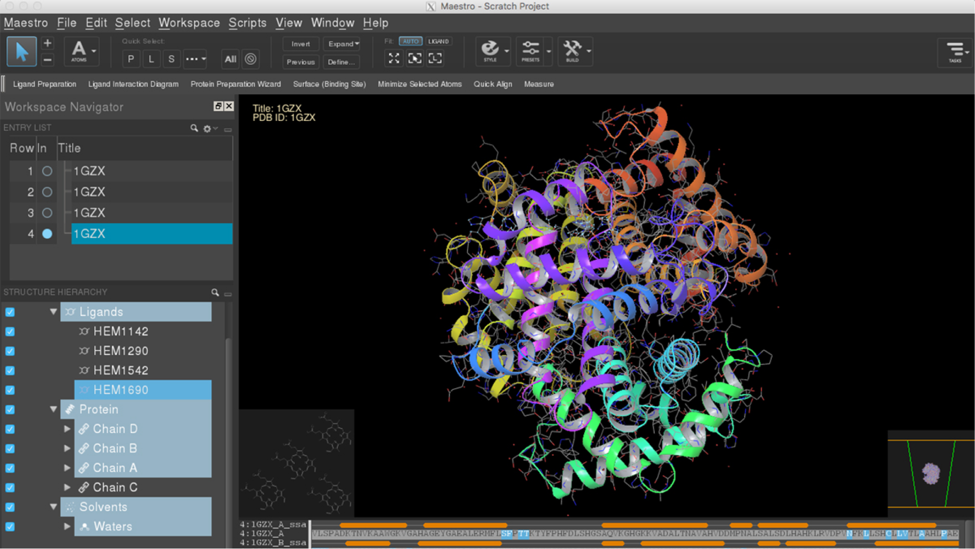 Graphical user interface to Schrödinger‘s computational modelling suite.