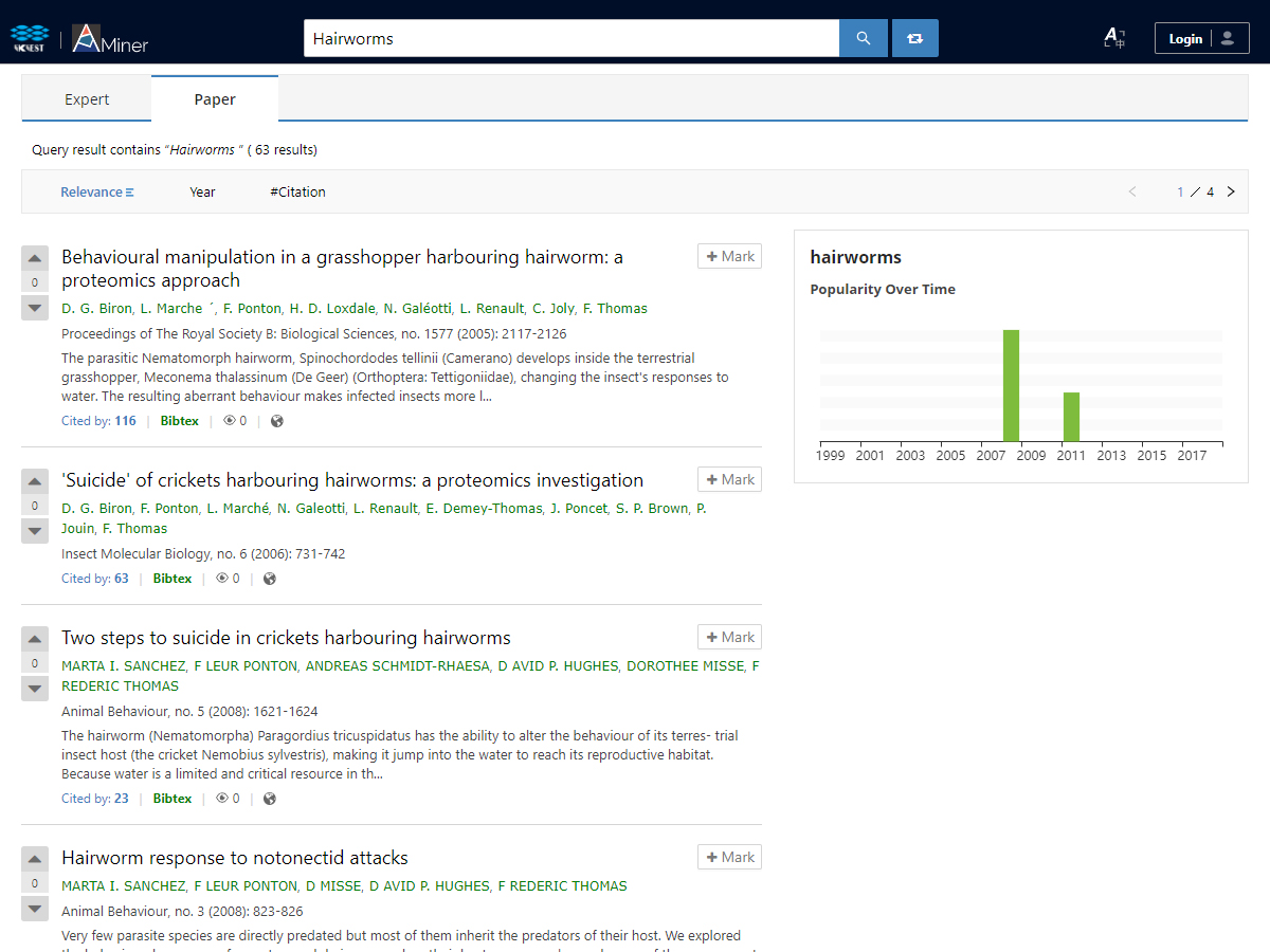 ArnetMiner (AMiner) is designed to search and perform data mining operations against academic publications on the Internet, using social network analysis to identify connections between researchers, conferences, and publications. This allows it to provide services such as expert finding, geographic search, trend analysis, reviewer recommendation, association search, course search, academic performance evaluation, and topic modeling. ArnetMiner was created as a research project in social influence analysis, social network ranking, and social network extraction. A number of peer-reviewed papers have been published arising from the development of the system. It has been in operation for more than three years and has indexed 130,000,000 researchers and more than 200 million publications. The research was funded by the Chinese National High-tech R&D Program and the National Science Foundation of China.