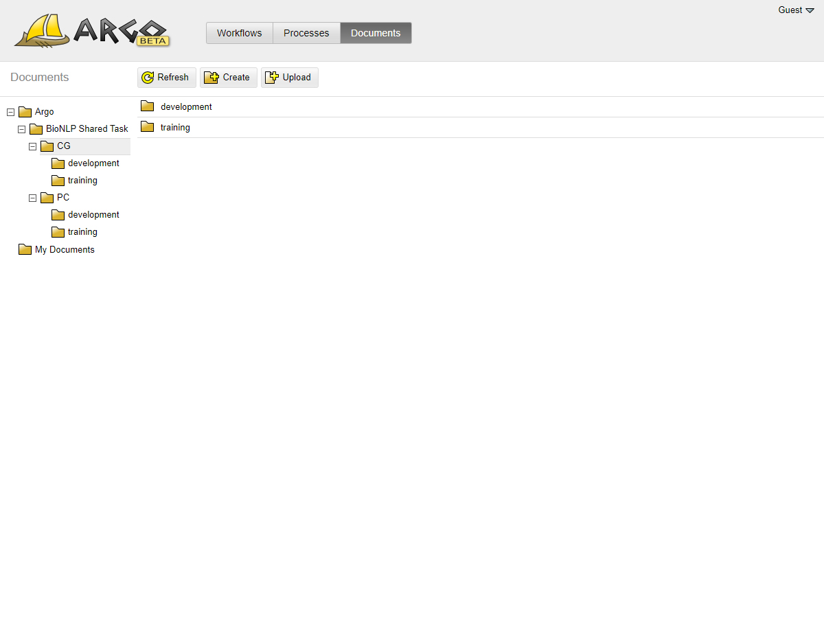 A workbench for building text-mining solutions with the use of a rich graphical user interface, for the process of biocuration. Central to Argo are customizable workflows that users compose by arranging available elementary analytics to form task-specific processing units. A built-in manual annotation editor is the single most used biocuration tool of the workbench, as it allows users to create annotations directly in text, as well as modify or delete annotations created by automatic processing components.