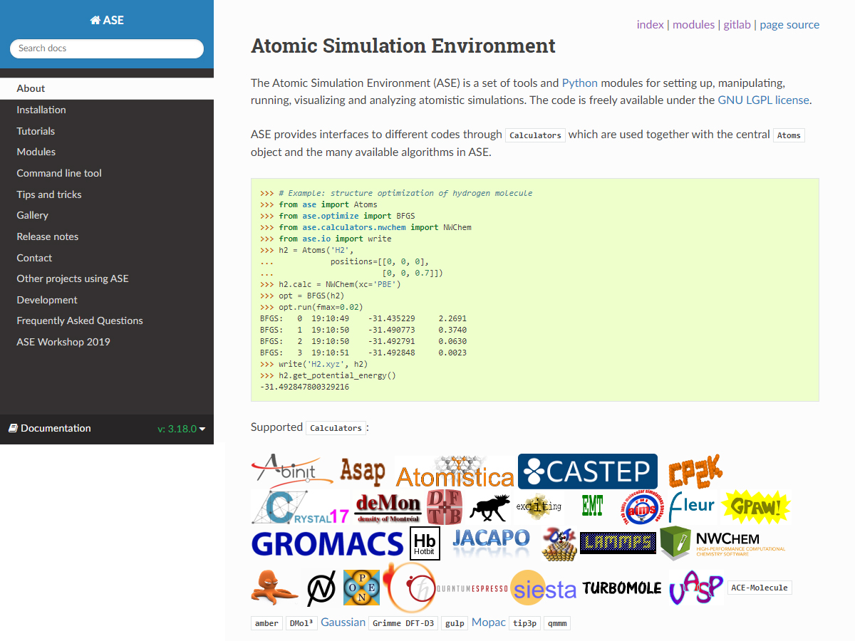 About Atomic Simulation Environment