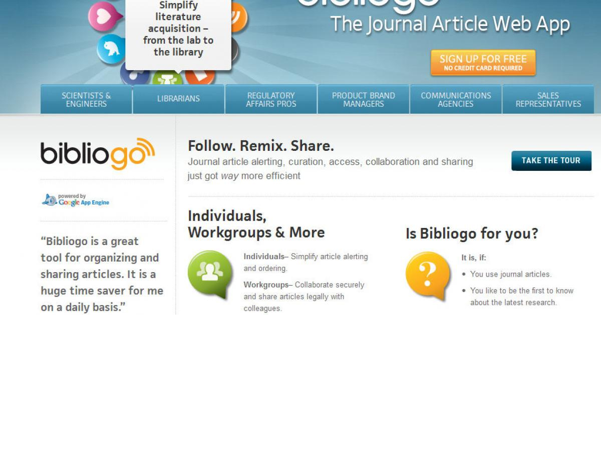 Bibliogo is an online citation and document management tool created by Reprints Desk, Inc., a Derycz Scientific Company. Users can sign up to use Bibliogo for free, but certain features of the tool are only accessible for users subscribed to the premium version of Bibliogo.