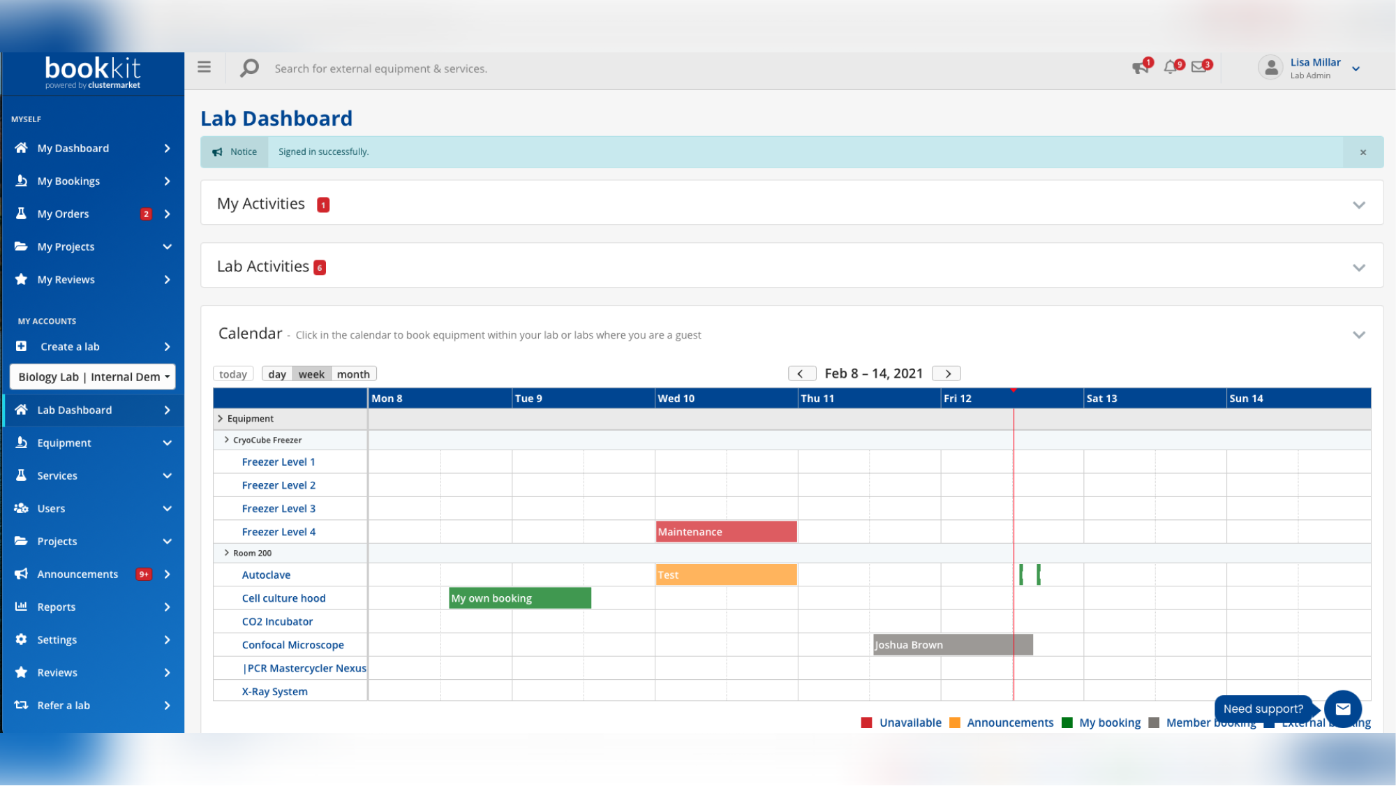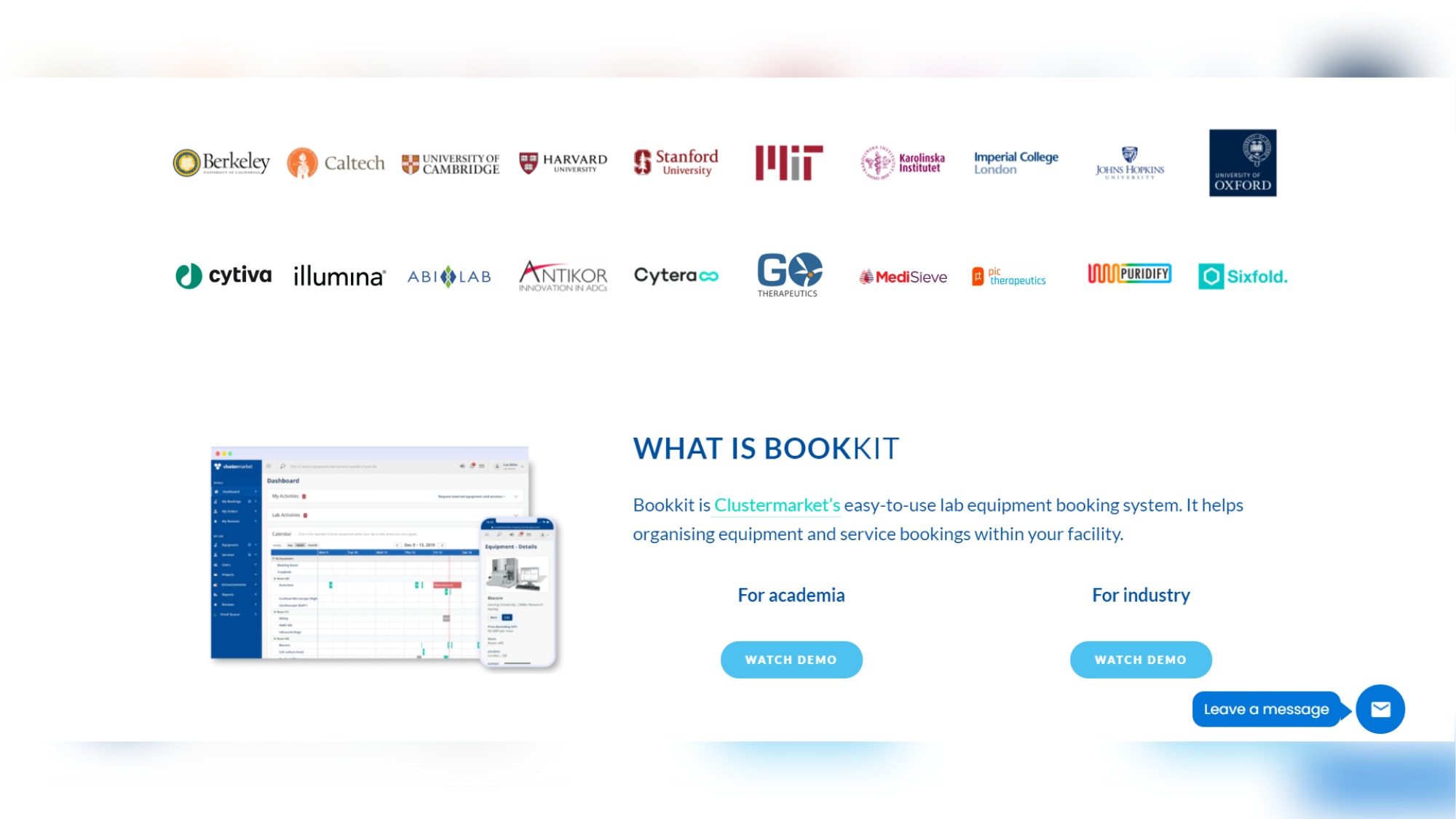 Bookkit is Clustermarket’s easy-to-use lab booking system for all academic research facilities and industrial laboratories that want to manage their lab infrastructure and instruments in the most efficient way. Bookkit is an intuitive lab booking system with free options for both academic and industrial laboratories.