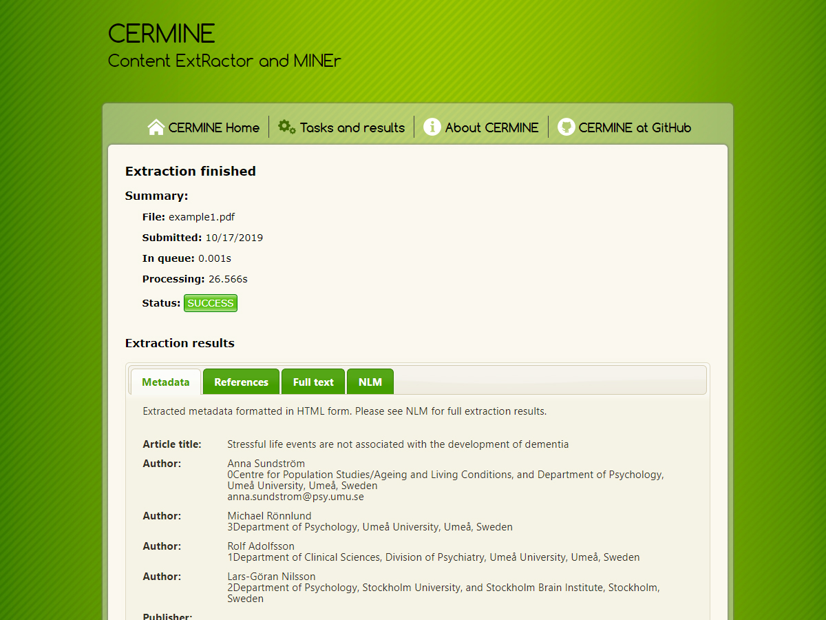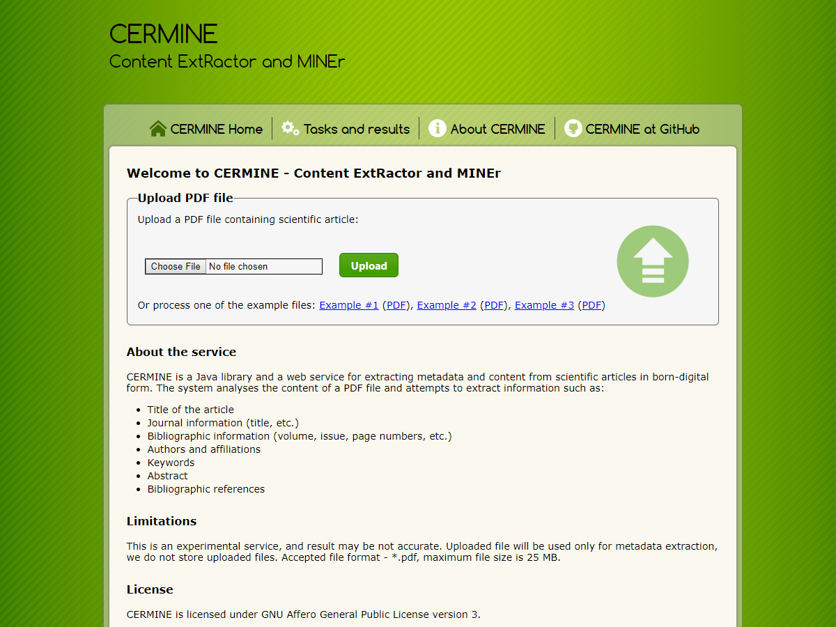 CERMINE is a comprehensive open-source system for extracting structured metadata from scientific articles in a born-digital form. The system is based on a modular workflow, whose loosely coupled architecture allows for individual component evaluation and adjustment, enables effortless improvements and replacements of independent parts of the algorithm and facilitates future architecture expanding. The implementations of most steps are based on supervised and unsupervised machine learning techniques, which simplifies the procedure of adapting the system to new document layouts and styles.