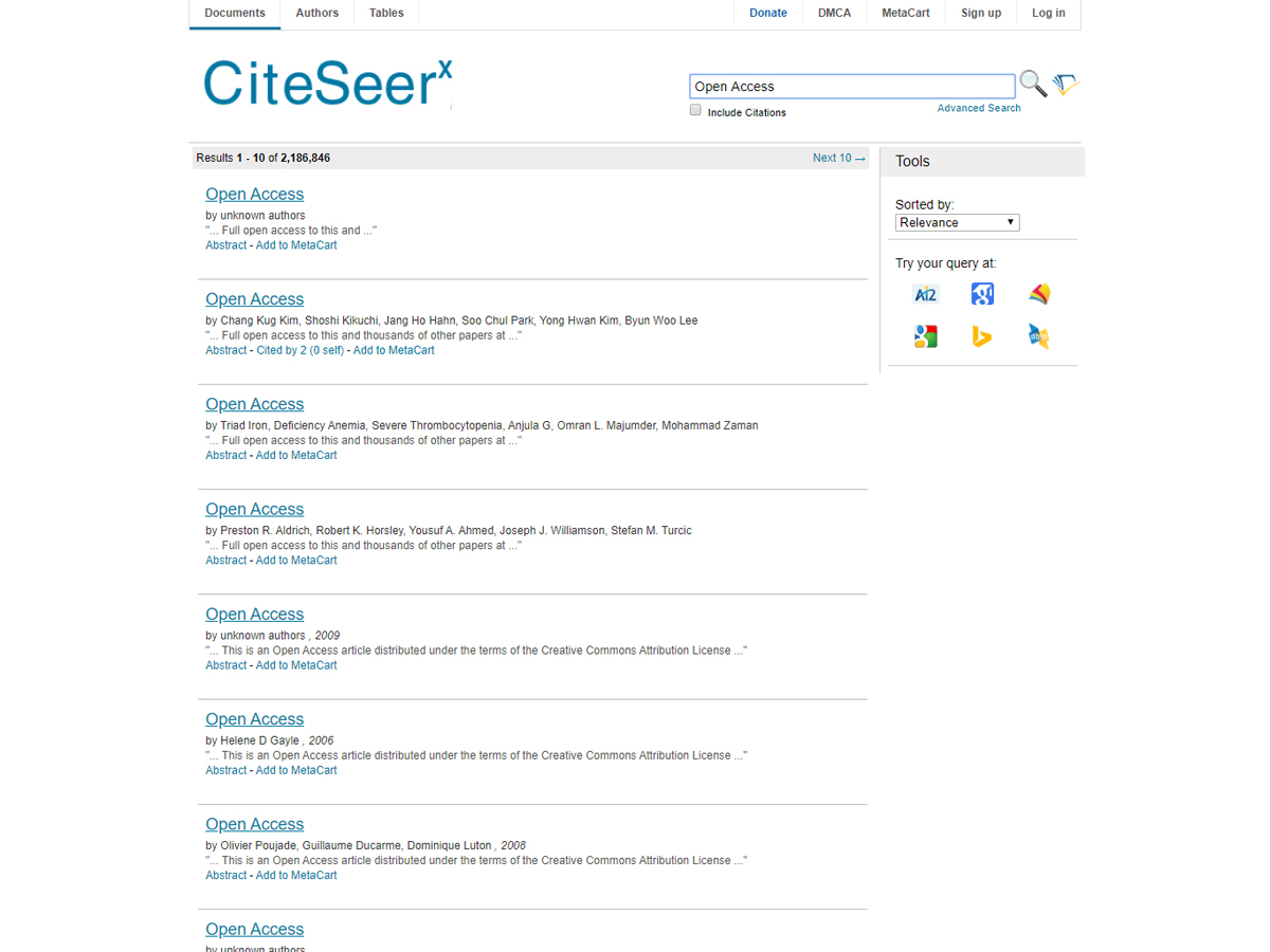 CiteSeerx (originally called CiteSeer) works primarily in the fields of computer and information science. It aims to improve the dissemination of scientific literature, as well as to provide improvements in functionality, usability, availability, cost, comprehensiveness, efficiency, and timeliness in access to scientific and scholarly knowledge.
