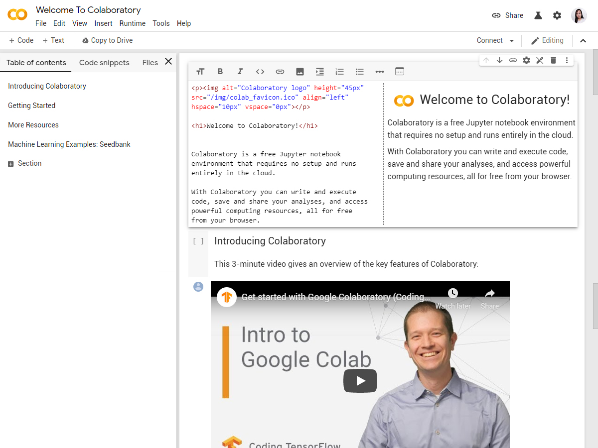 Colaboratory is a free Jupyter notebook environment that requires no setup and runs entirely in the cloud. With Colaboratory you can write and execute code, save and share your analyses, and access powerful computing resources, all for free from your browser.