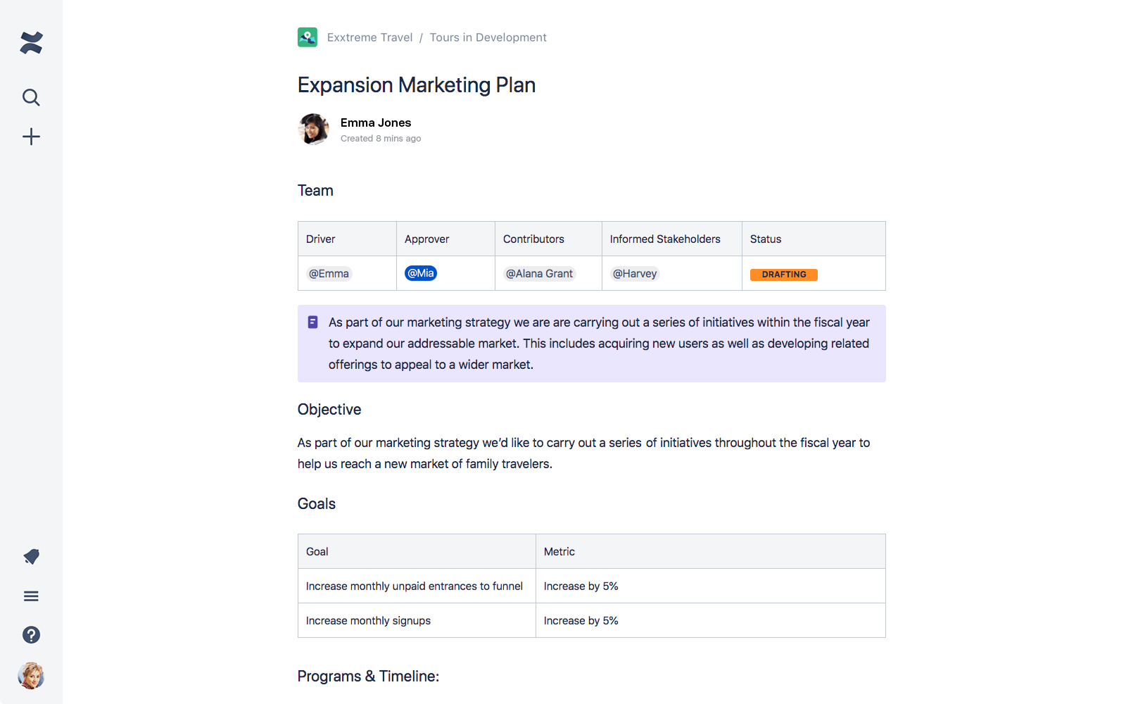 Create anything from meeting notes and product requirements to marketing plans and HR policies. Start with a blank page or a customizable template and add some personality with images, videos, and gifs to make your work come to life.
