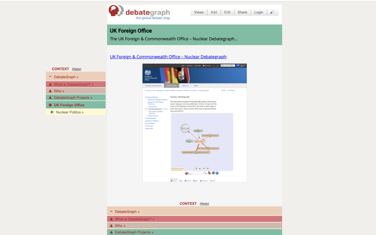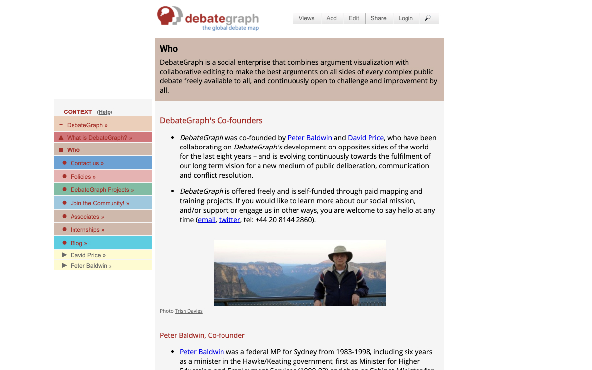 DebateGraph is an award-winning, cloud-based service that offers individuals and communities a powerful way to learn about, and deliberate and decide on, complex issues.