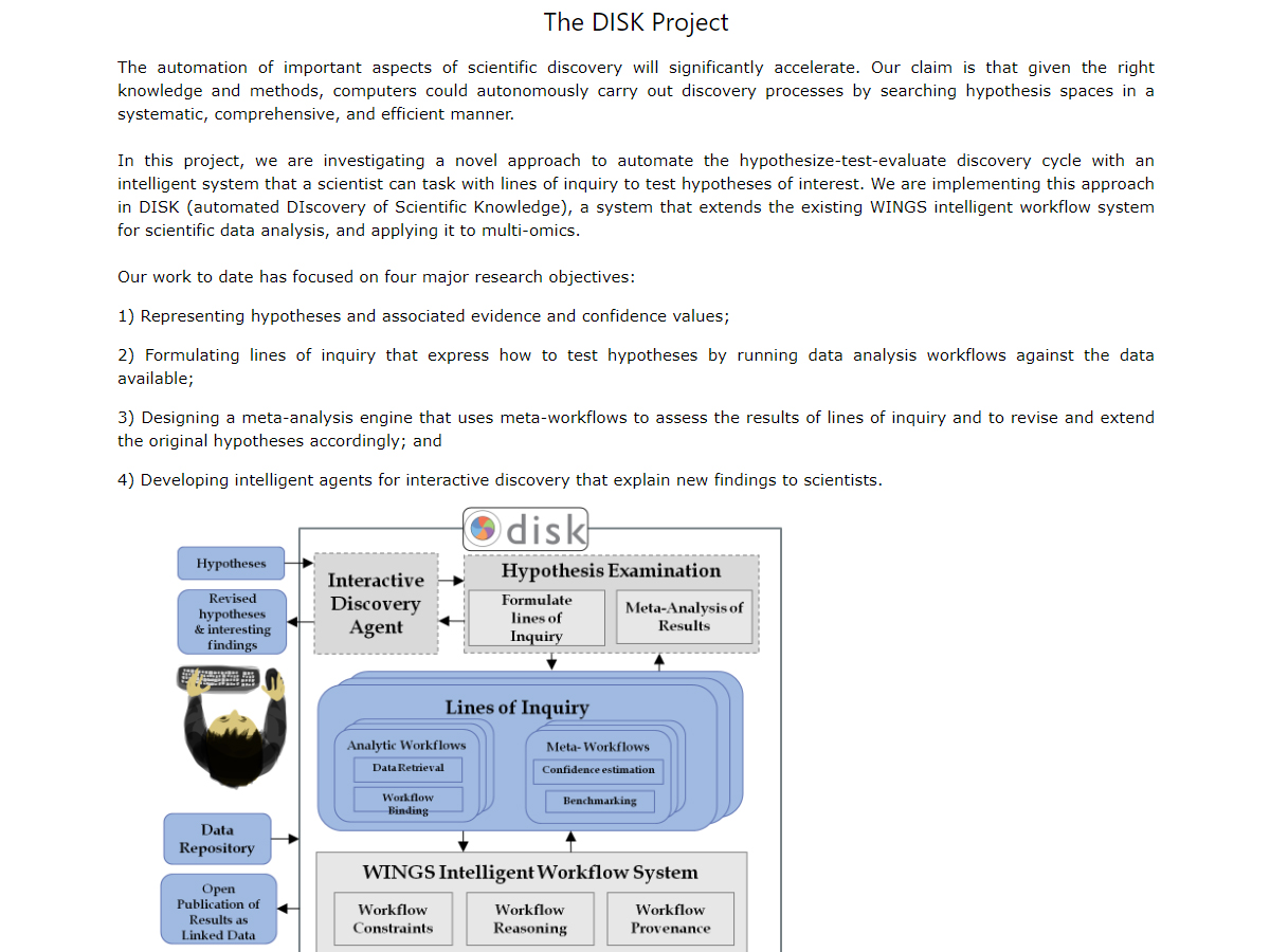 DISK is a novel framework to test and revise hypotheses based on automatic analysis of scientific data repositories that grow over time. DISK is able to search for appropriate data to test it and revise it accordingly and does this continuously as new data becomes available. DISK is also capable of triggering new kinds of analyses when new kinds of data become available.