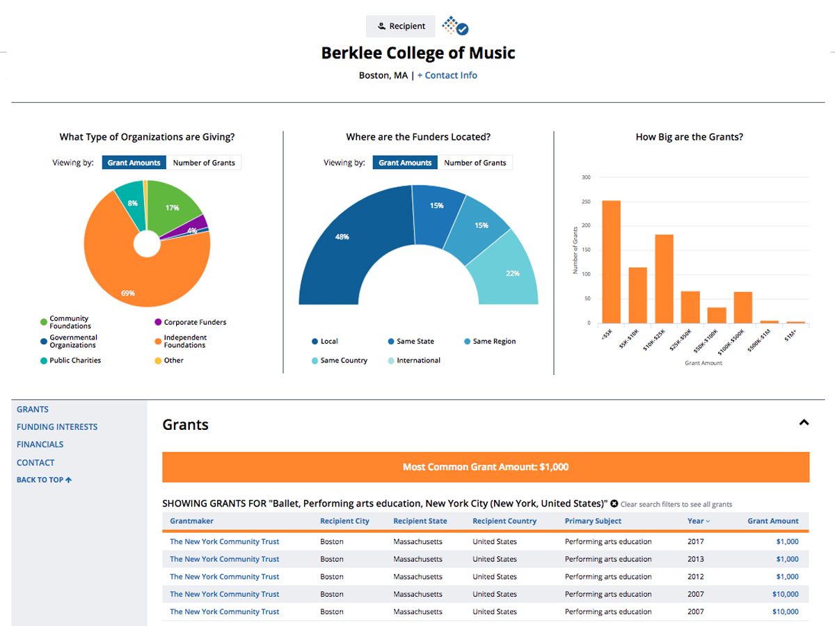 The Foundation Directory Online includes a searchable database of more than 2.4 million recently awarded grants plus a database of recently filed IRS 990 forms. Grantmakers and grants are searchable by name, geographic region, fields of interest, recipient type, support type, grant amount, and names of trustees and officers. It is a valuable resource for nonprofits’ fundraising needs, using interactive maps and charts, RFPs, and key funder and grants insights.