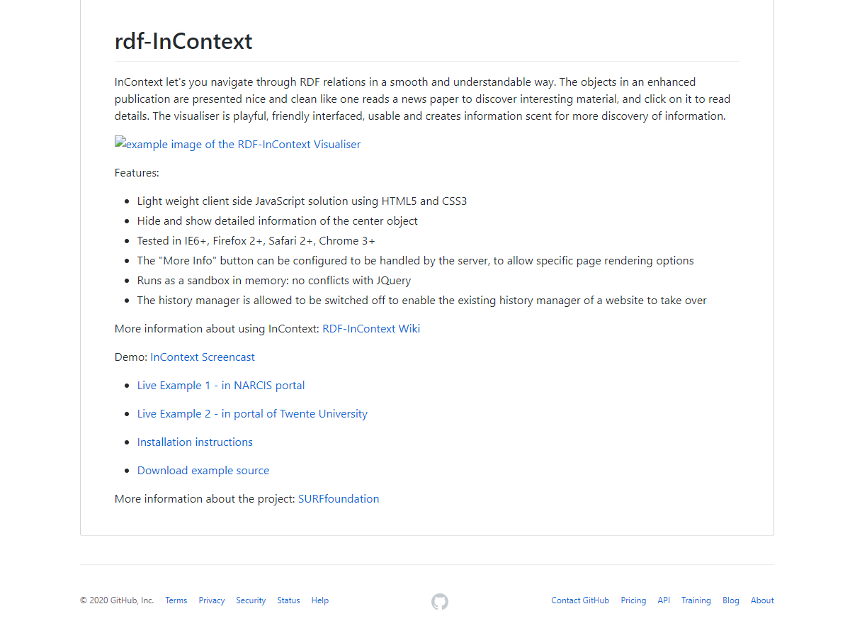 InContext is a visualisation tool that allows website builders to embed and visualise RDF relations in a smooth and user friendly way. The objects in an enhanced publication are presented nice and clean like one reads a news paper to discover interesting material, and click on it to read details. The visualiser is playful, friendly interfaced, usable and creates information scent for more discovery of information.