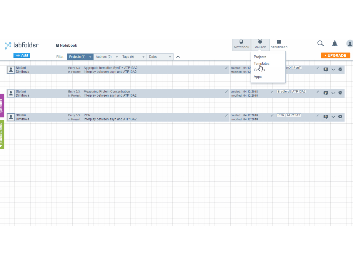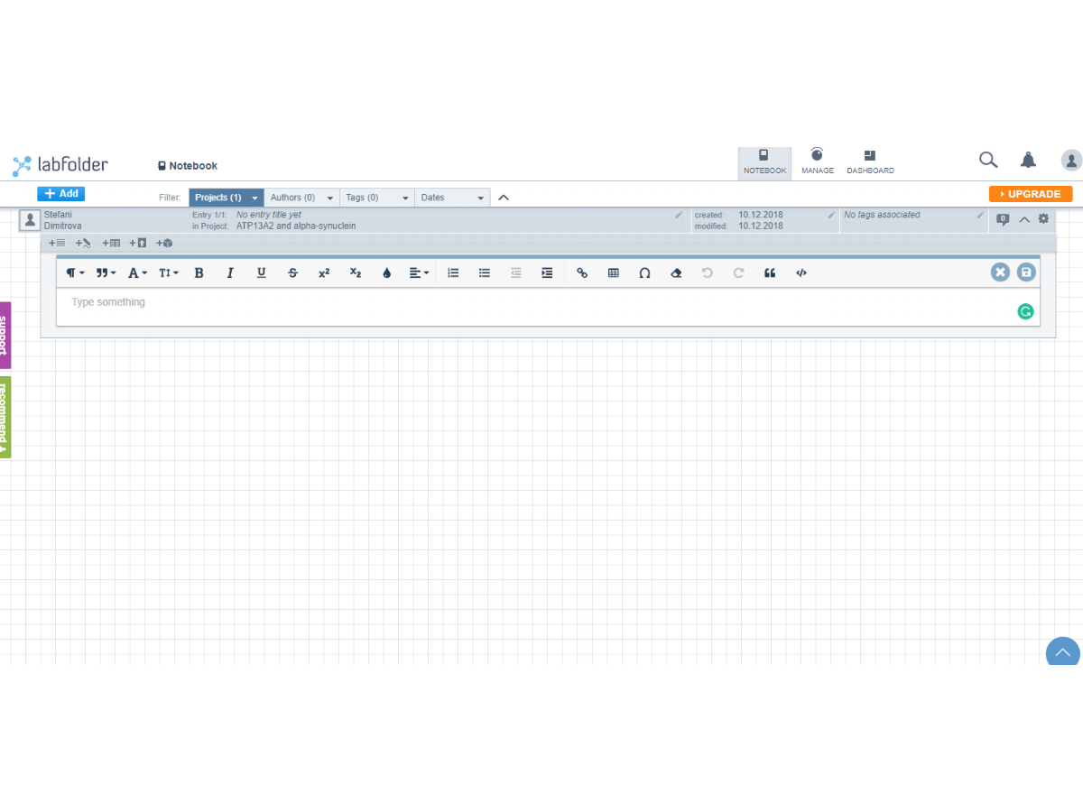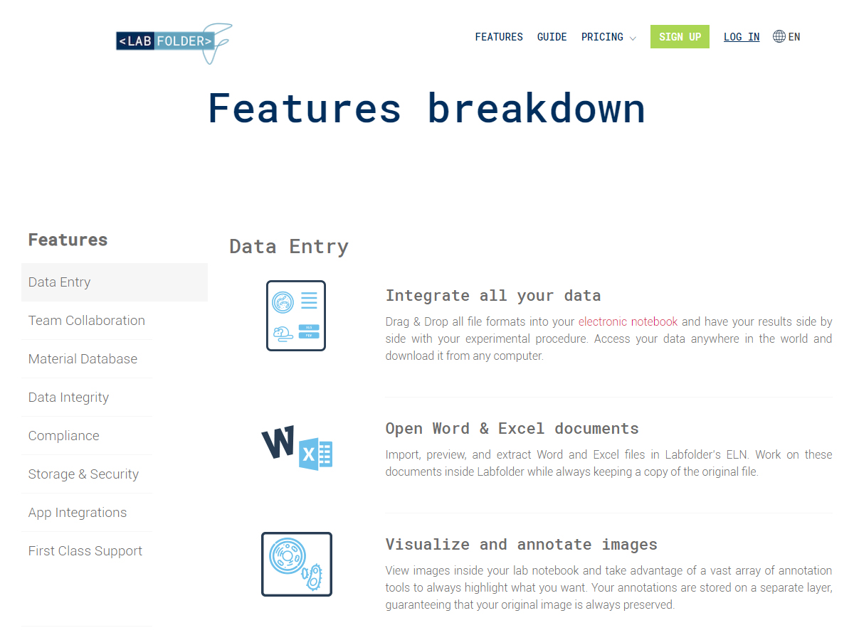 Labfolder is an electronic lab notebook that enables researchers to record findings and make new discoveries. By reinventing the traditional paper lab notebook, our productivity & collaboration platform makes it easier to create, find, share, discuss & validate research data as a team. labfolder is completely free for individual use and for groups up to 3 users. Key features of labfolder include team collaboration, data entry and retrieval, security control, and inventory management through collaboration via templates, messages, comments, user accounts, groups, and different access permission levels. Plus, users can organize their entries with tags, filter data by author, project or date, and retrieve information/files stored in attachments.