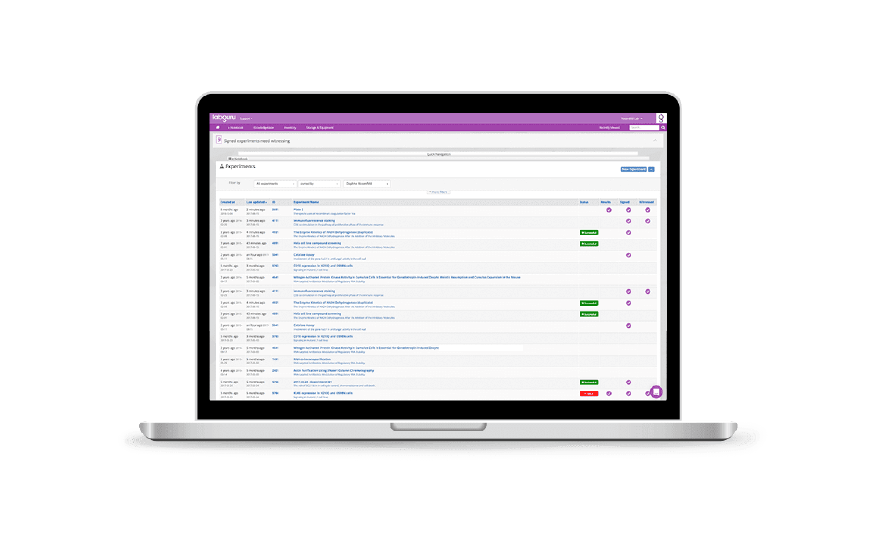 Run your lab more efficiently and maximize your research output. Plan and document experiments, track progress, streamline lab logistics and share results.