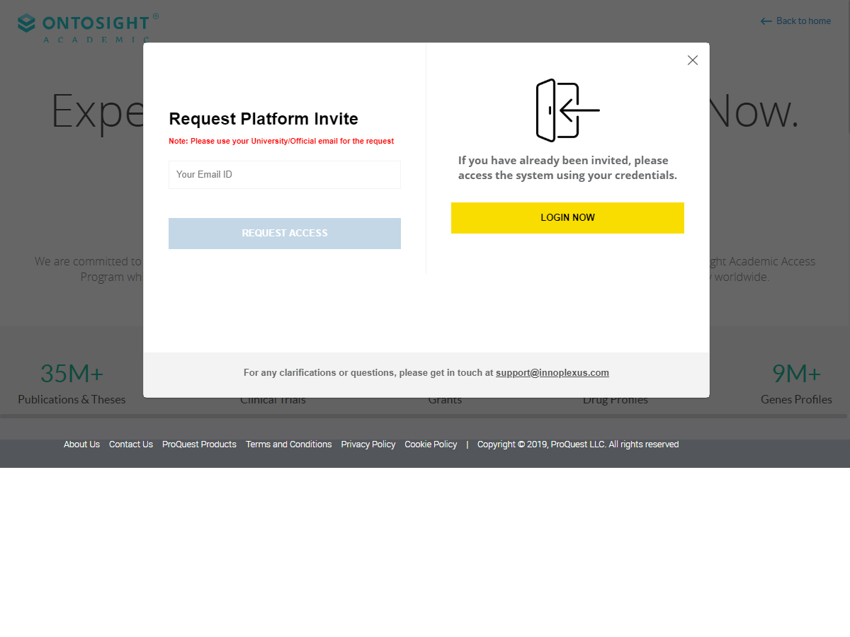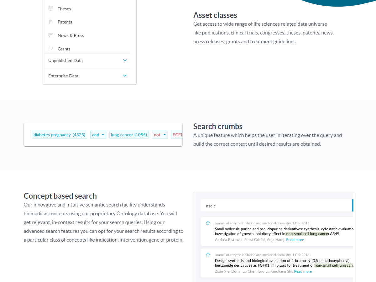 Ontosight® is an end-to-end search and discovery platform developed by Innoplexus which is a life science intelligence engine that allows users to query the biomedical ontology and retrieve data assets closely associated with the user's search term. This concept-based approach is made possible through the mapping of causal relationships between biomedical terms and concepts, allowing the platform to make logical jumps to other closely related concepts in the ontology. Users can create real-time custom dashboards for a variety of user-defined use cases relevant across the drug development process. Ontosight was rebranded in 2018 from iPlexus. As of 2019, Innoplexus has made a version of Ontosight available for free to academic researchers with a .org or .edu email address.