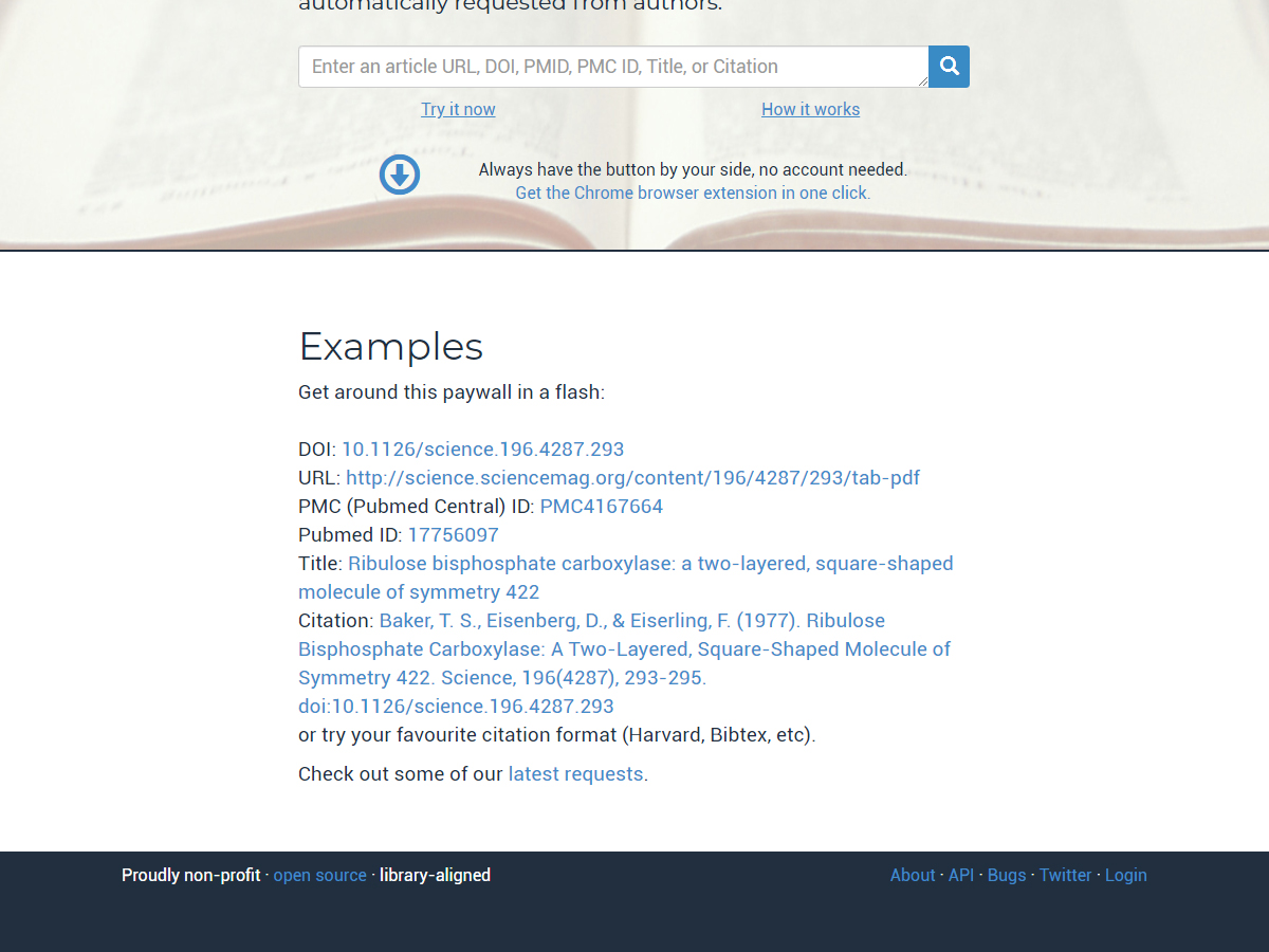 The Open Access Button shows you if there are free and legally available copies of articles as you find them – without you having to search them out. The service uses existing repositories and aggregators to locate accessible full-text from your browser and shows the availability, with a link, using a discrete icon on your screen. The Open Access Button also helps you locate open access Data associated with the work you are seeking. This service will not help you browse or search but will tell you if an accessible copy is available once you have found what you are looking for. They also provide a button that you can install on your browser for instant use.
