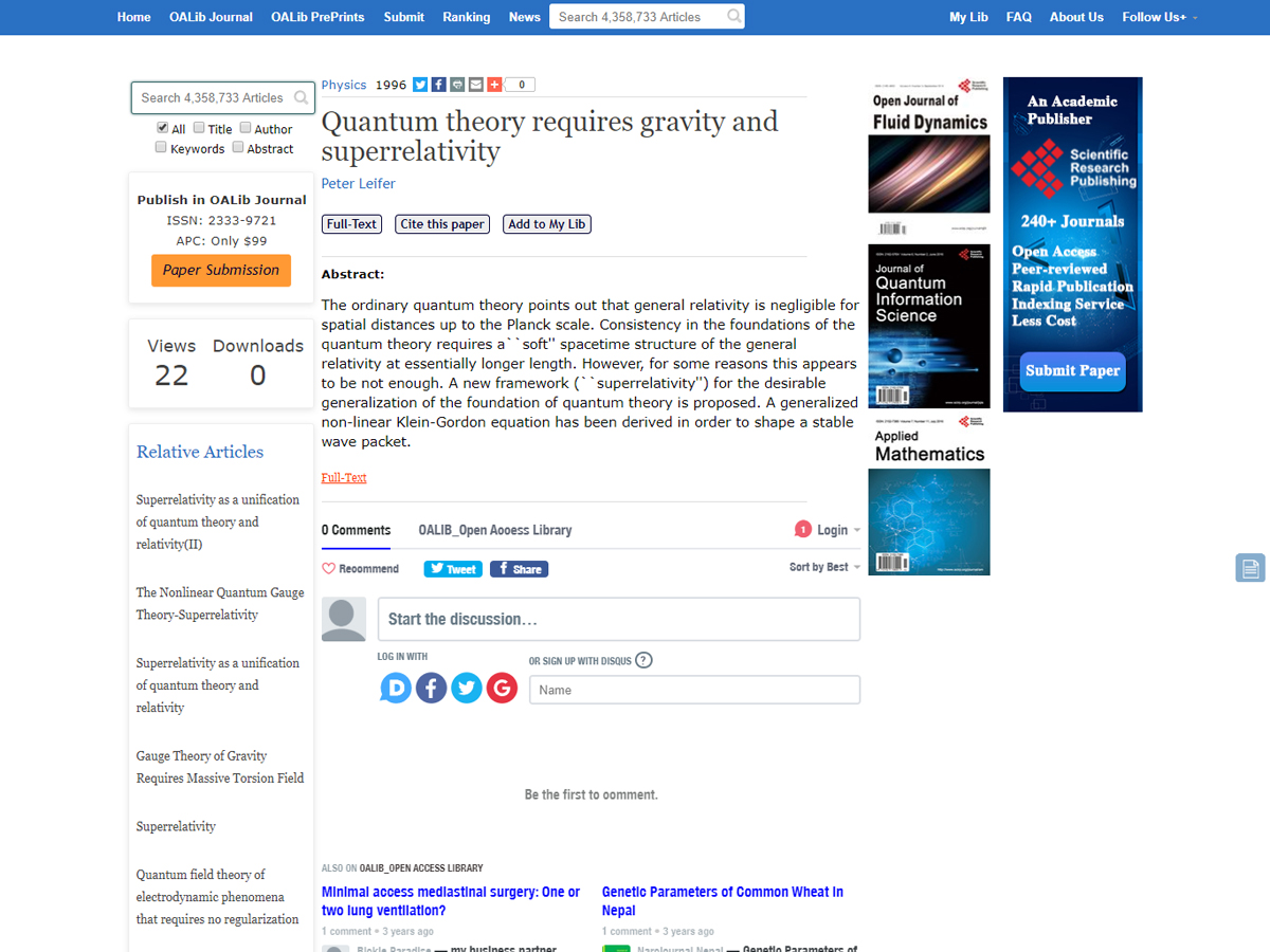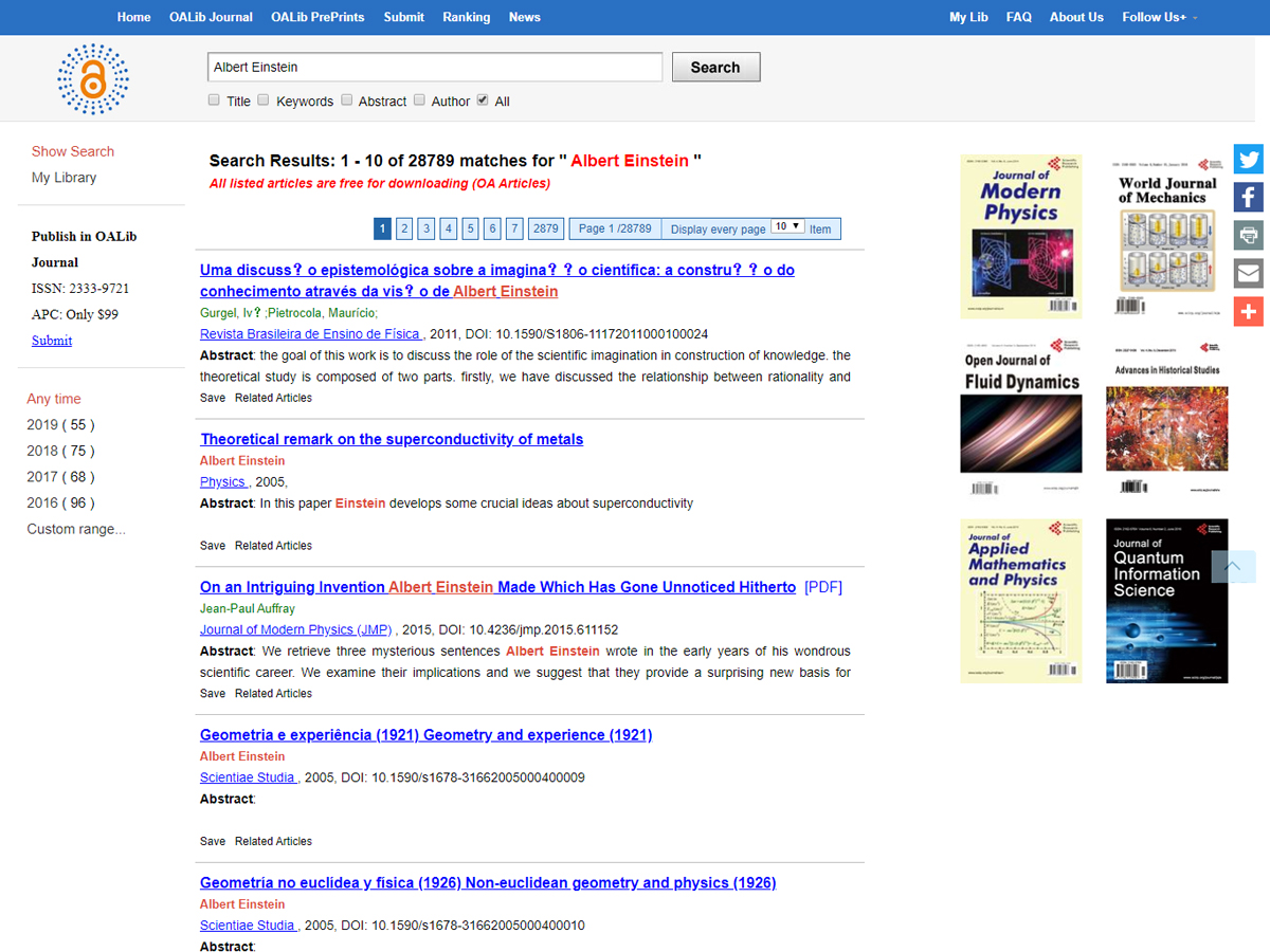 OALib Journal is a scholarly, peer-reviewed, open access journal, covering all the subject areas in STM (Science, Technology, and Medicine), as well as Social Sciences. It reaches all the Internet content that can be crawled and harvests the metadata of only those articles that are available in full text.