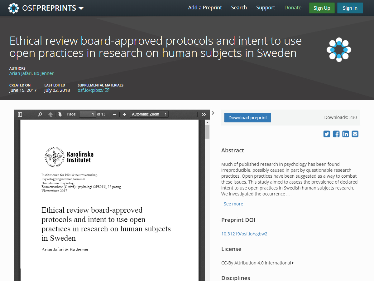 An Open Access option for discovering multidisciplinary preprints, postprint.