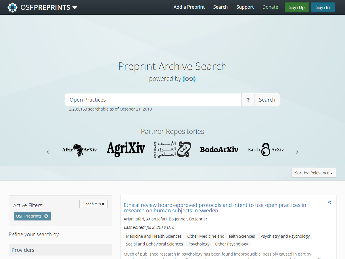 OSF preprint search