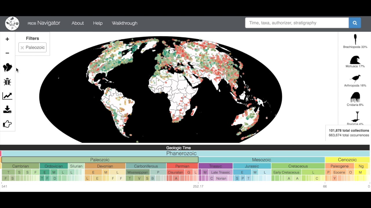 An online information resource on the distribution & classification of fossil animals, plants, & microorganisms.