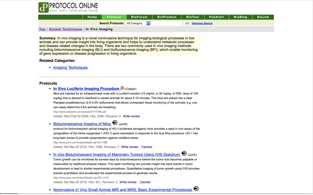 Database of research protocols in bioscience including molecular biology, cell biology, immunology, plant biology, developmental biology, neuroscience, bioinformatics, genetics, etc. Also hosts discipline-specific discussion forums, methods discussion mailing lists and provides PubMed alerting service