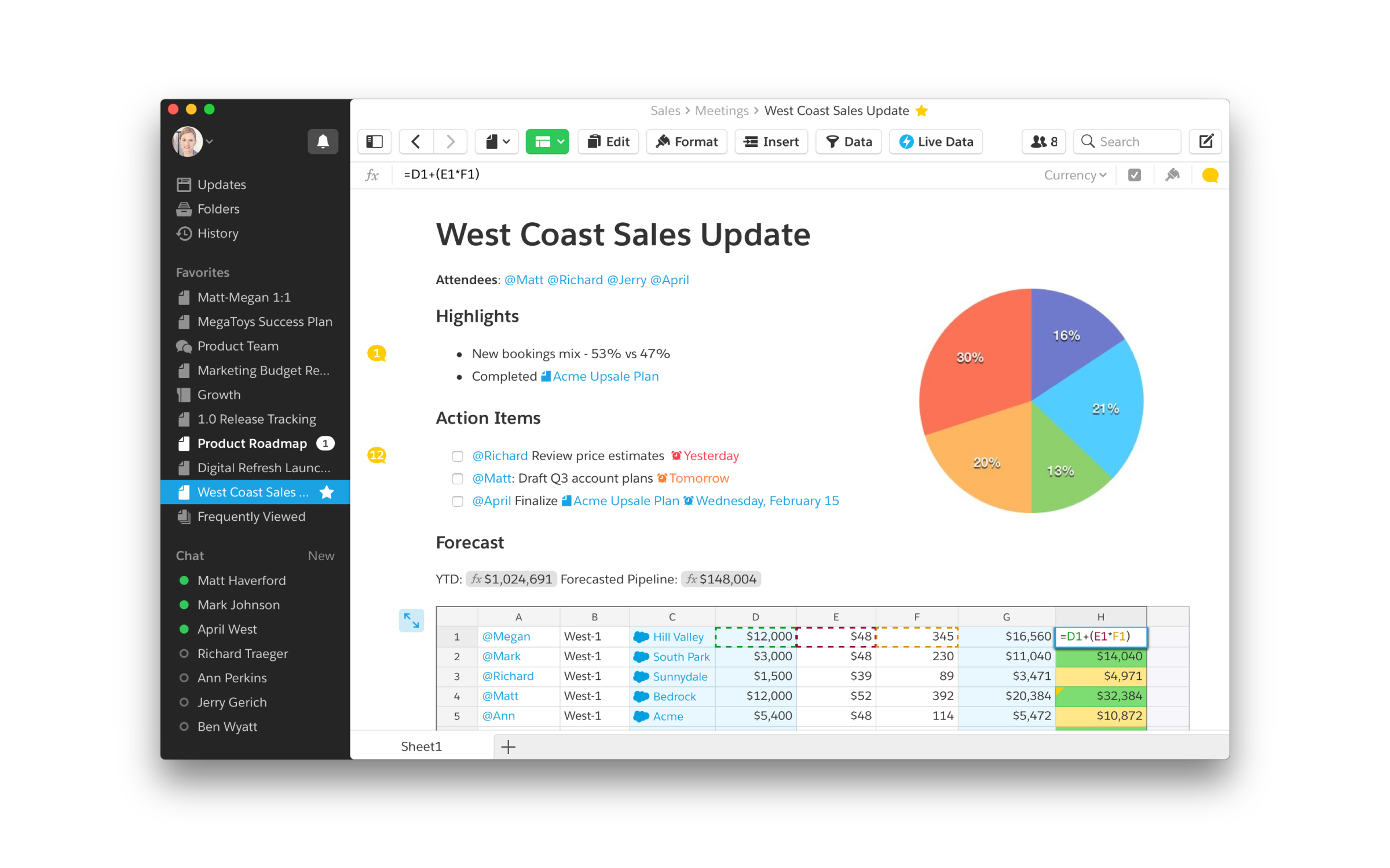 Secure sharing and collaboration on docs, spreadsheets, checklists, and chat