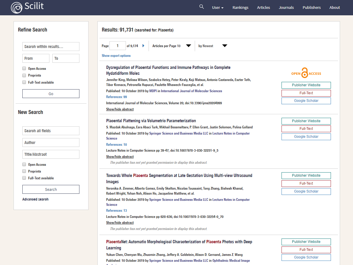 Scilit is a multidisciplinary, free scholarly database that indexes scientific material by extracting the latest data from CrossRef, PubMed, and other sources. This means that newly published articles are added to Scilit almost immediately. It is a comprehensive database, covering all subjects from arts & humanities, behavioral sciences & social sciences, to medicine & pharmacology, physical sciences, mathematics & computer science, chemistry & biology. Publications can be searched based on title, abstract, authors, or a combination of these fields. Search results include title, authors, published date, digital object identifier (DOI), a link to the publisher’s website, abstract, comments from SciForum, and related articles. Publishers have the possibility to login and import their articles to improve content accuracy.